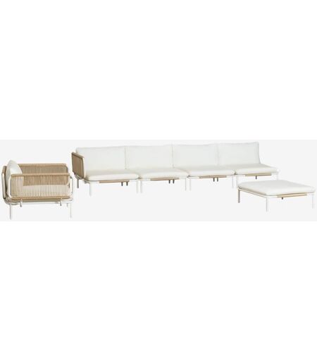 Sklum Canapé De Jardin D'angle Modulable 4 Pièces Avec Pouf Et Fauteuil Roubly Beige Amande