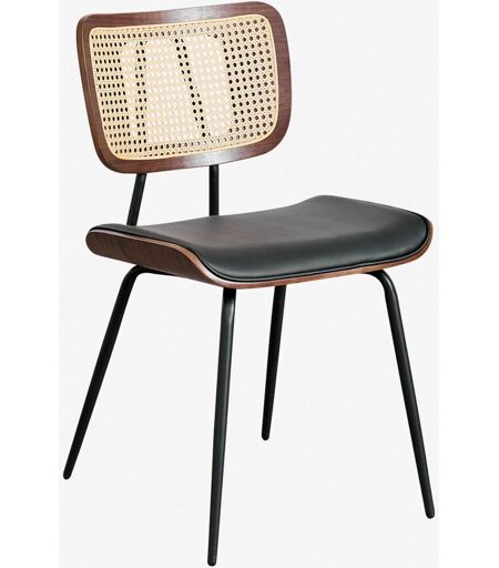 Sklum Pack De 4 Chaises De Salle À Manger En Bois, Rotin Et Similicuir Raysa Bois Foncé