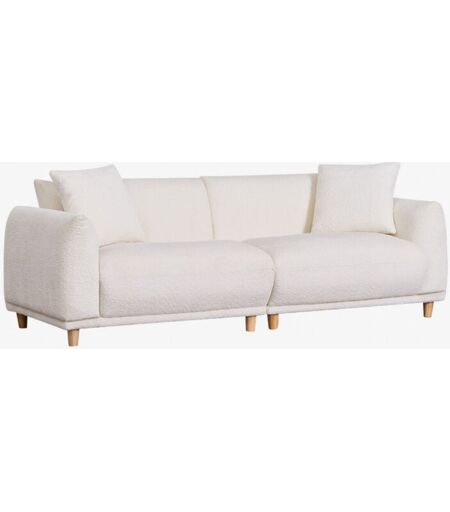 Parfait pour ajouter une touche chaleureuse et moderne à votre salon, le canapé bouclé 3 places Eracli allie harmonieusement des lignes contemporaines à la simplicité de son design. Recouverte de polyester avec une finition bouclée douce , cette pièce est parfaite pour ajouter une touche cosy à votre salon. L assise offre un confort exceptionnel grâce à son rembourrage en mousse de densité 35 kg/m³ et aux ressorts ensachés cachés à l intérieur. De plus, les accoudoirs et le dossier, tous deux remplis de mousse d une densité respective de 35 kg/m³ et 22 kg/m³, offrent un soutien adéquat pour un repos total. La structure interne du canapé a été réalisée en bois d eucalyptus massif et le dossier et l assise sont renforcés en contreplaqué afin d assurer stabilité et durabilité. Les pieds en bois d hévéa , dotés de coussinets en feutre , offrent non seulement de la résistance, mais prennent également soin de vos sols pour qu ils restent toujours comme au premier jour. Ce modèle comprend ...