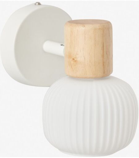 Sklum - Applique en fer, bois d'hévéa et verre Ekaizy Blanc