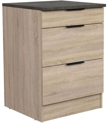 MIROYTENGO Meuble de cuisine bas Arko style industriel en chêne brut et noir avec 3 tiroirs 60 x 86 x 60 cm