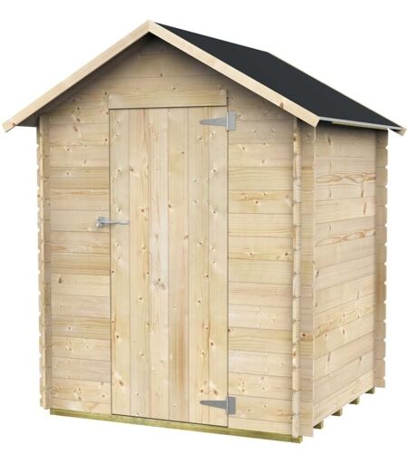 MAESTRO FERRETERO Abri de Jardin Bh16 Marcella 146x130 en Bois d’Épicéa Naturel 16 mm avec Porte Simple, Toit et Plancher OSB3, Montage Facile, Traitement Autoclave,