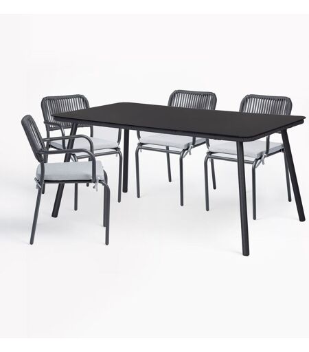 Sklum Ensemble Table Rectangulaire Arhiza, 160 X 90 Cm, Et 4 Chaises De Salle À Manger Empilables En Aluminium. Gris Graphite