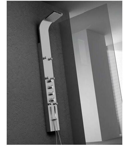 Colonne de douche thermostatique Zeus avec hydromassage en acier inoxydable CARACTÉRISTIQUES : Robinets thermostatiques Arroseur supérieur avec jets à effet pluie 22x20cm 6 jets d'hydromassage réglables MESURES : Largeur : 21cm Hauteur : 168cm MATERIAUX Châssis en acier inoxydable Jets de caoutchouc Poignée en PVC Des contrôles en laiton Flexible en acier inoxydable renforcé ...