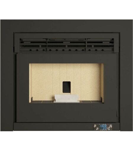 Description générale Ce poêle à granulés de bois combine efficacité énergétique et confort d'utilisation. Avec une puissance calorifique allant jusqu'à 10 kW, il est conçu pour chauffer des espaces allant jusqu'à 245 m³ tout en garantissant un rendement élevé de 90%. Fabriqué en Espagne, ce poêle est doté de plusieurs systèmes innovants qui optimisent la combustion et améliorent l'expérience utilisateur. Spécifications techniques Classe énergétique : A+ Puissance calorifique : 4,9 kW (minimum) à 10 kW (maximum) Rendement : 87% (minimum) à 90% (maximum) Autonomie : jusqu'à 11 heures Consommation : 1,1 kg/h (minimum) à 2,4 kg/h (maximum) Capacité de la trémie : 13 kg Dimensions : L.771 x P.557 x H.654 mm (hors tout), L.587 x P.555 x H.588 mm (encastrement) Poids : 99 kg Raccordement des fumées : Ø80 mm Entrée d'air : Ø40 mm Matière : acier, fonte, vermiculite, vitrocéramique Couleur : noir Compatibilité et accessoires Silo encastrable avec alimentation latérale gauche ou droite Châssis ...