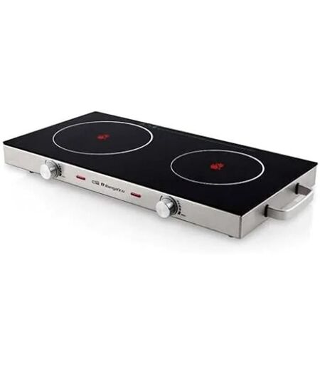 Orbegozo PCE 6000 - Plaque vitrocéramique double verre trempé, 2 thermostats, poignées isolantes, couleur noire