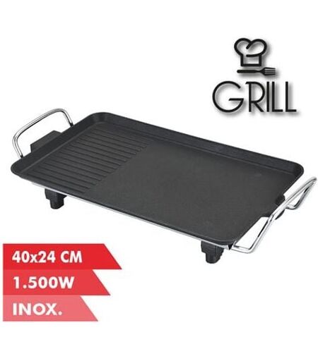 Muvip Gril électrique 1500W Caractéristiques : -Puissance : 1500W -Poignées en acier inoxydable -Plaque de cuisson antiadhésive facile à nettoyer -2 zones (lisse, grill) -Thermostat amovible avec régulateur de température -Longueur du câble : 1 mètre -Dimensions de la surface : 40x24cm ...