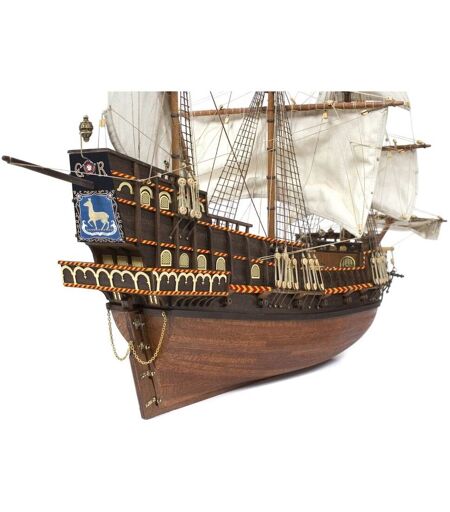 Maquette du Golden Hind, majestueux galion anglais. Dimensions : Longueur : 64.3 cm Largeur : 23 cm Hauteur : 45 cm Echelle : 1:85Le montage de la maquette nécessite une cloueuse. Age minimum : 15 ans ...