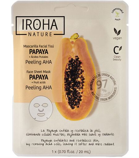 Iroha Nature Papaya Peeling Masque facial en tissu Aha 1 u
