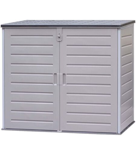 DESCRIPTION GÉNÉRALE Armoire en plastique idéale pour l'extérieur, d'une grande capacité de 1.170 litres. Elle permet de protéger les outils de jardin, l'épurateur ou le filtre de piscine, et la tondeuse. Son design compact et moderne s'adapte à tous les styles de décoration grâce à ses couleurs neutres. Fabriquée en acier et en panneaux de polypropylène solides et durables, elle est bicolore, gris et blanc écru. Elle possède une fermeture avec des amortisseurs pour éviter des accidents lors de sa descente. L'accès intérieur se fait par une double porte pliante, facilitant le retrait des objets. Un système de verrouillage permet d'ajouter un cadenas pour sécuriser l'intérieur. Le coffre est doté d'un plancher pour isoler contre l'humidité et la poussière. Sa légèreté permet de le déplacer facilement, et il ne nécessite aucun entretien. SPÉCIFICATIONS TECHNIQUES Dimensions extérieures : 140x82x123 cm Dimensions intérieures : 136x78x119 cm Capacité : 1.170 litres Poids : 19,5 Kg ...