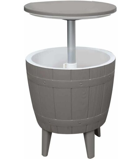 Table de jardin avec glacière et fonction chaise . Avec cette table en résine , vous aurez tout ce dont vous avez besoin pour vos fêtes au jardin. Il est très fonctionnel en offrant plusieurs options pour rendre vos apéros en plein air beaucoup plus agréables. C'est une table à 4 pattes qui imite un tonneau en bois avec un plateau rond qui s'élève de 25 cm au-dessus de sa hauteur fermée. C'est une excellente option si vous voulez mettre des snacks sur table et avoir des boissons dans la glacière avec des glaçons pour les garder au froid, sans ouvrir et fermer sans cesse. Mais ce n'est pas tout ! Vous pouvez utiliser la base dans son option repliée comme siège pour vos invités, car elle supporte 175 kg . Fabriquée en résine robuste qui ressemble à des planches beige avec protection contre les rayons UV pour l'extérieur. Doté d'une puissante isolation thermique qui garde les boissons froides pendant des heures. De plus, lorsque votre fête est terminée, vous pouvez la vider facilement ...