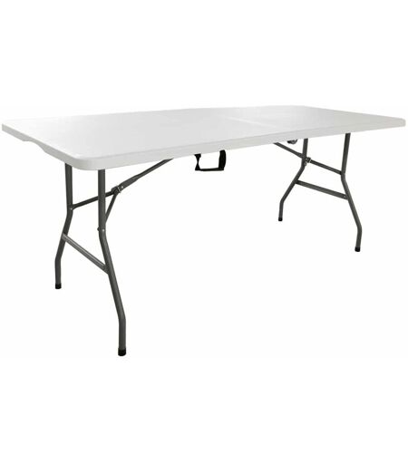 DESCRIPTION GÉNÉRALE Table de jardin composée d'un grand panneau blanc en polyéthylène haute densité avec protection contre les rayons du soleil et d'une robuste structure en acier gris. Sa base est très large pour réunir famille et amis lors d'événements. Elle a une épaisseur de 3,45 cm et supporte 120 kg. Ses pattes ont des protections en caoutchouc pour éviter d'endommager la surface. Facile à nettoyer avec un chiffon humide. SPÉCIFICATIONS TECHNIQUES Dimensions: 180x74x74 cm Dimensions pliée: 92,5x74x7 cm Poids: 11,5 kg Matériau: Polyéthylène et acier Poids supporté: 120 kg Personnes: 6/8 Couleur: blanc et gris Protection contre les UV Protection anticorrosion Mécanisme de verrouillage de sécurité ...