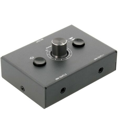 SPÉCIFICATIONS TECHNIQUES : Câble audio de 3,5 mm inclus Couleur Noir Entrées 1 ou 2 jacks stéréo 3,5 mm Boîtier en métal Sorties 1 ou 2 jacks stéréo 3,5 mm Taille 78.0x50.0x20.0mm Sélecteur audio à 2 ports par jack 3,5 mm. Bouton Mute ; une seule pression suffit pour mettre l'appareil en sourdine ; très utile dans des conditions particulières. Bouton Toggle ; vous pouvez facilement sélectionner l'appareil pour qu'il fonctionne comme entrée ou sortie audio (1 entrée 2 sorties ou 2 entrées 1 sortie). Aucune alimentation ou logiciel requis ; plug and play. Signal analogique maximal compatible avec une entrée et une sortie de 2V p-p. Utilise un câble audio jack standard de 3,5 mm, distance de transmission en entrée et en sortie jusqu'à 8 mètres. Boîtier métallique de 78,0x50,0x20,0 mm. Entrée 1 ou 2 jacks audio de 3,5 mm. Sortie 1 ou 2 jacks audio de 3,5 mm. ...