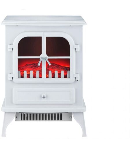 Purline - Cheminée électrique au sol 2000W style rétro en acier laqué blanc