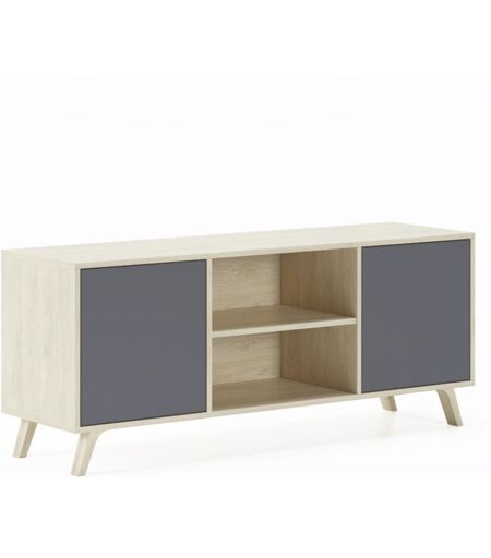 Meuble tv 140 avec 2 portes, salon, modèle wind, couleur structure Puccini, portes couleur Gris Anthracite, mesure 140x40x57cm de haut. - Skraut Home