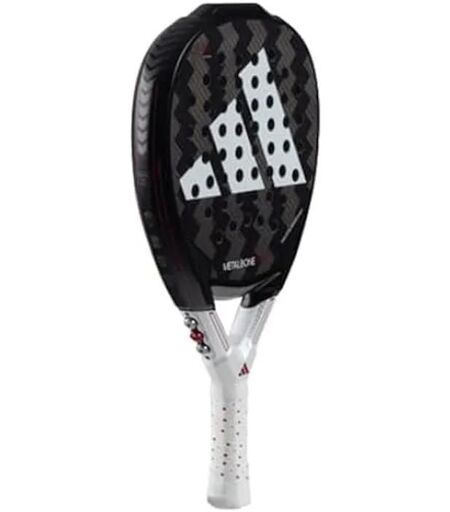 Adidas Metalbone HRD+, raquette de padel haut de gamme pour 2024L'Adidas Metalbone HRD+ est une raquette de la collection 2024, con�ue avec une forme de diamant surdimensionn?e adapt?e aux joueurs professionnels, ?tant la raquette pr?f?r?e d'Ale Galan.Son design surdimensionn? avec un ?quilibre ?lev? permet un jeu puissant et une grande zone de frappe pour ex?cuter des coups durs et dominer le jeu offensif.La raquette int�gre le syst�me d'?quilibre de poids d'Adidas, vous permettant de personnaliser le poids et l'?quilibre de la raquette en fonction de vos pr?f?rences de jeu individuelles.Des raquettes puissantes avec une technologie avanc?eLe cadre de la raquette est compos? de fibre de carbone, assurant solidit? et long?vit?, tandis que les faces sont en carbone alumin? 2 pour 1, offrant une surface ferme pour les coups puissants.Profitez des technologies Spin Blade Decal et Smart Holes Curve pour un contr¿le sup?rieur et des effets impressionnants sur vos coups gr¿ce ¿ la finition rugueuse et ¿ la disposition strat?gique des trous.Durabilit? et design exceptionnelsConstruite avec la structure octogonale et la technologie de renforcement structurel, cette raquette offre une r?sistance exceptionnelle ¿ la torsion, garantissant une durabilit? exceptionnelle. Elle est ?galement ?quip?e du Metalbone Protector Tape, un protecteur adh?sif 3M personnalis? pour prot?ger la raquette pendant le jeu.Le design ?pur? et minimaliste combine le noir du corps de la raquette avec des d?tails blancs, dont le logo et la signature d'Ale Galan en rouge vif. ...