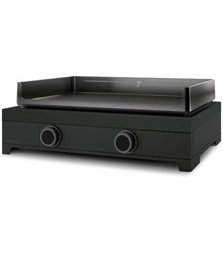 Plaque monobloc en fonte émaillée inclinable Châssis acier noir double paroi revêtement 3 couches avec 4 pieds réglables 2 brûleurs design Forge Adour acier aluminisé puissance 5300 W Manettes ABS noires Allumage piezzos électroniques intégrés dans manettes, thermocouples de sécurité Récupérateur de graisse fonte alu capacité 1,2 L avec accès > Gaz butane ou propane, gaz naturel sur commande Plancha pour 8/10 personnes Certification intérieur/extérieur Garantie 15 ans ...