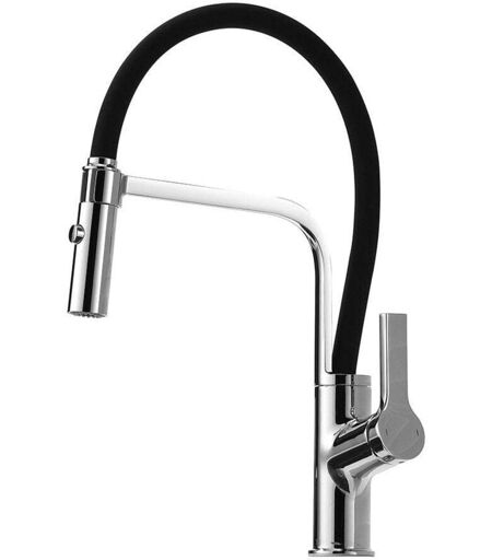 Grifo de monomando de fregadero de cocina de la serie ARIZA de Oxen . De diseño moderno y profesional, es un modelo ideal para aficionados a la cocina, ya que con su caño extraíble flexible puedes llegar más cómodamente a las diferentes funciones que necesitarás en una cocina. Diseño actual con el toque negro del caño extraíble flexible curvado en color negro. Aporta un toque distintivo a tu cocina. Incluye conexiones. Acabado cromado brillo y negro mate. Caño extraible flexible. Medidas : 52x442x52 mm (ancho x alto x profundidad). ...