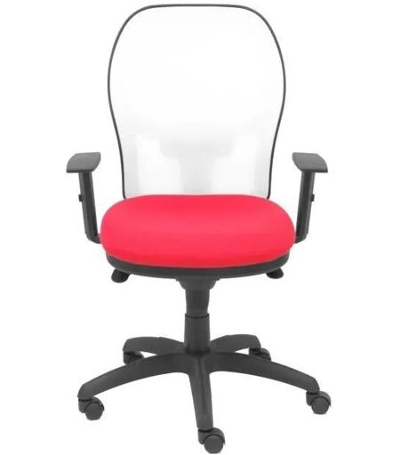 PIQUERAS Y CRESPO Modèle Jorquera - Chaise de bureau ergonomique avec mécanisme de synchronisation, bras et hauteur réglables - Dossier en résille blanche respirante et assise rembourrée en tissu rouge BALI ...