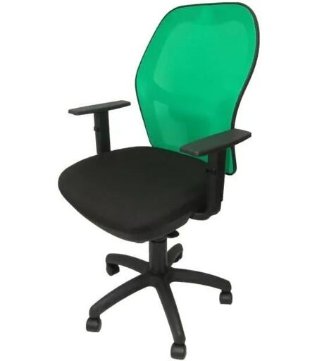 Siège de bureau ergonomique avec mécanisme synchrone, accoudoirs réglables et hauteur réglable. Dossier en maille respirante verte et assise rembourrée en tissu BALI noir. Marque: PIQUERAS Y CRESPO. Couleur principale: Vert. Matière du revêtement: Tissu. ...