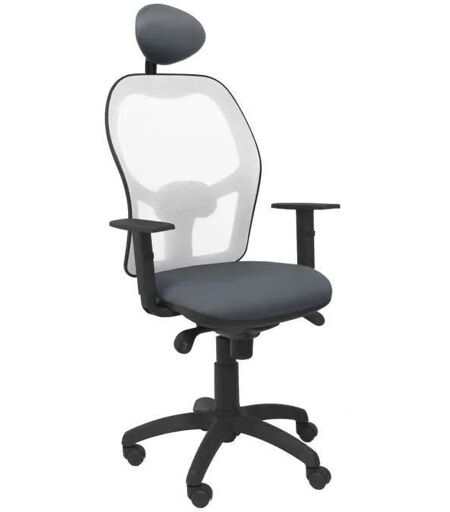 Siège de bureau ergonomique avec mécanisme synchro, accoudoirs réglables et réglables en hauteur, dossier en maille respirante en blanc et assise rembourrée en tissu BALI gris foncé (avec appui-tête) PIQUERAS Y CRESPO Modèle Jorquera PIQUERAS Y CRESPO ...
