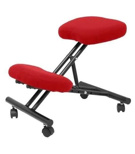Tabouret de bureau ergonomique fixe, réglable en différentes positions et à roulettes. siège rembourré en tissu BALI rouge (AVEC KNEE). PIQUERAS Y CRESPO Modèle Mahora ...