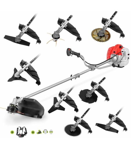 Débroussailleuse à essence Greencut GGT650X-9 - 65cc - 4,9cv - Moteur 2 temps - 9 accessoires pour la coupe - Guidon à double poignée - Régulateur de