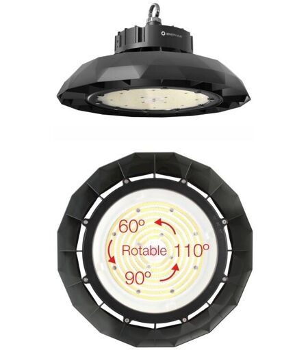 Conçu pour être installé dans des entrepôts ou des zones industrielles, Ufo Lens Dali existe en quatre versions qui diffèrent en puissance : 100W, 150W, 200W et 240W. La puissance est réglée en usine, mais le capuchon comprend une vis qui permet de l'ajuster en fonction des besoins de l'espace. Avec le + vous augmentez la puissance prédéfinie de 15% et avec le – vous diminuez la puissance par défaut de 15%. Il permet, avec une simple rotation frontale, de modifier les degrés d'ouverture entre 60º, 90º et 120º, ce qui le rend très polyvalent et s'adapte aux besoins de l'espace. UFO Lens Dalí est idéal pour éclairer des espaces industriels ou des entrepôts grâce à son excellente résistance aux chocs, IK10 et IP65. Extrudé en aluminium et polycarbonate avec une finition noire, il atteint un rendement lumineux réel de 160Lm/W et dispose d'une température de couleur disponible de lumière naturelle (4 000K). UFO Lens Dalí est équipé d'un système de protection contre les surtensions >4KV ...