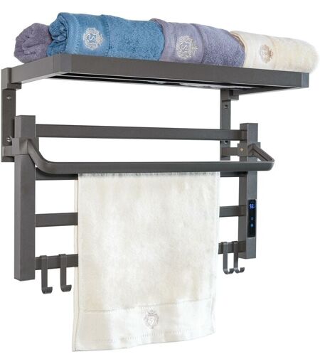 Purline - Sèche-serviettes électrique avec étagère gris anthracite 55W