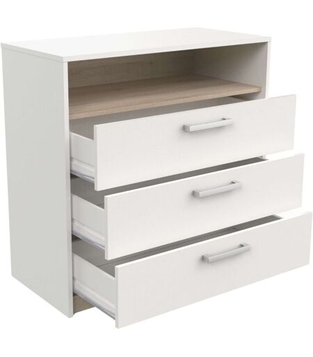 Miroytengo - Commode Watson 3 tiroirs et 1 étagère en mélaminé blanc et chêne Kronberg 81 cm - Mobilier fonctionnel