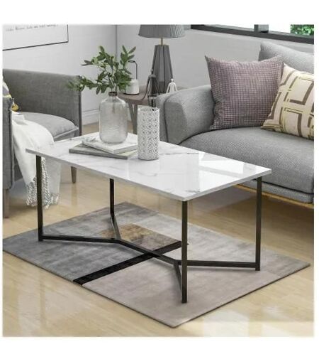 MDF+ Placage avec motif marbre¿Pas de marbre, pas d'ardoise DES DÉTAILS BIEN FABRIQUÉS - À la fois luxueuse et sobre, cette table basse d'inspiration moderne avec pied en Y du milieu du siècle offre une touche d'élégance avec fonctionnalité. Composée d'une base en métal laqué durable et d'une surface polie en imitation marbre, cette pièce de transition peut faire passer votre décoration intérieure au niveau supérieur de charme. Stylez-le avec un plateau rempli de magazines et un bouquet de roses ou utilisez-le comme support pour votre boisson MATÉRIAUX - Fabriqué en bois composite de haute qualité et une base en métal pour une construction durable. Combinez avec des tables d'appoint assorties pour un ensemble de salon complet. DIMENSIONS - 106×60×45 cm (L×l×H). LIMITES DE CHARGE - Supporte jusqu'à 75 lbs. MDF+ Placage avec motif marbre¿Pas de marbre, pas d'ardoise ...