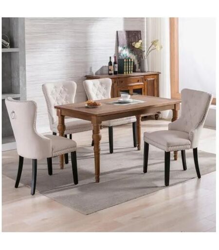 Chaises De Salle À Manger En Lin Avec Pieds En Chêne, Poignées, Boutons Chromés Et Garnitures À Clous (Beige, 4 Pièces)
