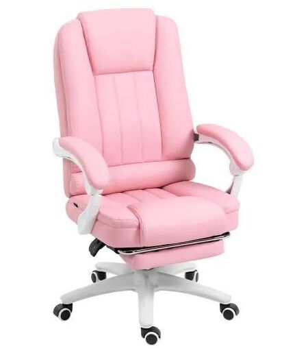 Vinsetto Chaise De Bureau Chaise De Bureau Repose-Pieds Fonction Chaise Longue Roulettes Hauteur Réglable Similicuir Rose