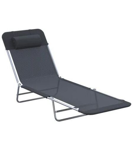 Outsunny Chaise Longue De Jardin Chaise Longue De Relaxation À 2 Pieds Noir Pliable Pour Jardin Terrasse & Balcon