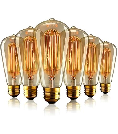 Longziming - E27 Edison Ampoule Vintage, E27 Ampoules à incandescence Rétro,ST64 220-240V 40W Edison Ampoule Antique Lampe Blanc Chaud- (6pack)