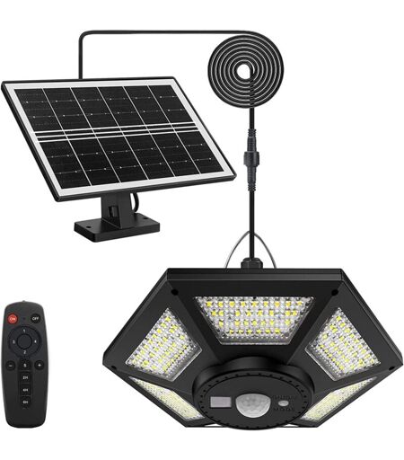 LONGZIMING 180 led Lampe Solaire Intérieur Extérieur 1000LM Lampe Suspendue, Lumiere Solaire Exterieur,5 Modes Kit Eclairage avec Télécommande IP65 étanche pour