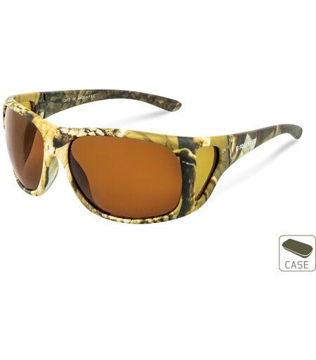 Les lunettes polarisantes de la série SG FOREST en style camouflage conçues pour les pêcheurs ou chasseurs. Les verres marron polarisants offrent une bonne protection contre le soleil dans toutes les conditions. Le symbole FF (Full Frame) signifie que les cercles sont autour des verres entiers. En plus, il y a deux petits verres polarisants sur les côtés des lunettes qui absorbent les rayons du soleil du côté et améliorent la vision périphérique. Le matériel léger est agréable à porter et offre une bonne résistance contre l'endommagement. SG FOREST sont emballées et livrées en housse solide avec un design camouflage. Lunettes polarisantes Delphin sont un produit haut de gamme avec tous les certificats et tests exigés par l'Union européenne. Ces derniers garantissent leur aptitude médicale et les qualités certifiées par nombreux tests. Informations techniques : Largeur du nez : 2,2 cm Diamètre des verres : 63 cm x 47 cm Longueur de branche : 10,4 cm Poids : 28 g ...