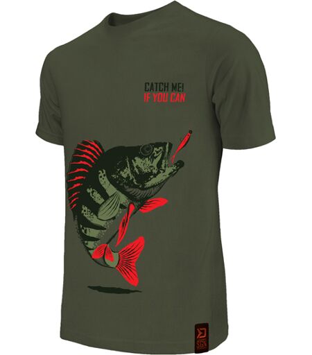 Une série des T-shirts stylés avec les dessins des poissons convenable pour la pêche ou pour la vie quotidienne. CATCH ME IF YOU CAN (attrape-moi si tu peux) sûrement deviendra une pièce préférée de votre garde-robe. T-shirt Catch me! PERCHE est en couleur verte avec un dessin de perche qui se rapproche d'un leurre — un moment auquel attend chaque pêcheur ! Le matériel et le dessin imprimé sont de la qualité supérieure. Disponibles dans un grand éventail des tailles de S jusqu'à KING SIZE (équivalent de 4+XL, aussi connu comme XXXXXL). Le modèle King Size est ici pour les pêcheurs robustes de plus de 135 kg. Composition : 100 % coton ...