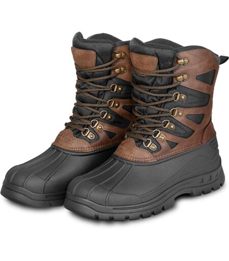 Pendant l'hiver, le confort devient la priorité au bord de l'eau. C'est pourquoi nous avons décidé d'élargir la gamme de chaussures pour vous protéger du froid et de l'humidité. Chaussures de randonnée Delphin ProTRAX sont un choix idéal pour des conditions hivernales imprévisibles. Pendant la conception, nous avons soigneusement choisi les matières pour vous offrir un confort absolu. La partie inférieure est en caoutchouc thermoplastique pour garantir la durabilité et le poids léger. La partie en caoutchouc va jusqu'aux chevilles et protège vos pieds de l'humidité lorsque vous traversez des flaques d'eau, de la neige fondue ou de la boue. La semelle en caoutchouc est facile à nettoyer et garantit la stabilité même sur les surfaces glissantes. La partie supérieure est composée d'une combinaison de cuir synthétique et du tissu, qui gardera vos pieds au chaud même par temps très froid. Les chaussures sont doublées en laine polaire et en fausse fourrure pour augmenter la résistance au froid. Grâce à ces caractéristiques, vous serez confortable même dans le temps extrême, comme pendant la pêche sur glace quand les chaussures sont en contact direct avec la glace. Des lacets de haute qualité sont enfilés dans des œillets métalliques. Pour stabiliser la cheville, il y a 4 crochets métalliques sur les côtés. La hauteur a été conçue pour supporter une épaisse couche de neige. De plus, il y a une patte de maintien au-dessus du talon pour se chausser plus rapidement. La couleur marron et noir s'accorde parfaitement avec les tenues de pêche, mais aussi avec les vêtements de chasse ou d'autres vêtements de plein air. Si vous cherchez des chaussures fiables qui garantissent la chaleur, le confort et la durabilité dans les conditions extrêmes, Delphin ProTRAX est le choix clair. ...