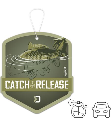 Attraper et relâcher - une méthode de pêche qui gagne en popularité. Pour ceux qui la pratiquent, on a conçu un désodorisant CATCH and RELEASE avec un motif de la carpe qui est remise à l'eau. Un élastique permet de l'accrocher à l'endroit préféré. ...