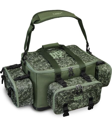 Delphin SPACE est le nom de la série unique des sacs de la marque Delphin. Elle est exécutée avec soin, possède des fermetures éclair hautes de gamme et le design unique avec le camouflage C2G. Après le succès du sac à dos BLOKZ, on a décidé d'introduire la version pour un sac type CarryAll. Ce dernier peut avoir un volume de 30 jusqu'à 50 litres. Un grand avantage de ce produit est que les petits sacs amovibles sont les mêmes que chez le sac à dos BLOKZ et vous pouvez les échanger entre eux ! Vous ne devez plus faire et puis refaire vos bagages quand vous voulez prendre un autre type de sac avec vous. Comme le nom l'indique, ce sac contient des « blocs » qui créent un ensemble. La base de BLOKZ est un sac avec trois petits sacs en C2G design. Chaque petit sac a le volume de 5 litres. Dedans, BLOKZ contient une cloison amovible qui divise l'espace principal. Chaque sac additionnel a des clips pour les joindre avec un sac principal. Cette structure offre un espace généreux de 45 litres. Pour ceux qui veulent avoir encore plus de volume, il est possible d'acheter encore un petit sac individuel et le mettre en haut. Les sangles peuvent être utilisées aussi pour le vêtement ou d'autres accessoires. L'intérieur est conçu pour déposer d'autres sacs de la série AREA ou SPACE. En haut est encore une double poche pratique en filet. En plus, le rembourrage de 6 mm de chaque côté offre la protection maximale de votre équipement. Une sangle rembourrée offre le confort pour vos épaules, aussi que les poignées pratiques pour porter le sac à la main. Informations techniques : Dimensions, y compris les poches : 65x27x45 cm Dimension d'espace central : 40x30x27 cm Dimensions d'un petit sac : 15x32x11 cm La poche double en maille : 30x20 cm Le camouflage stylé C2G de la marque Delphin est beaucoup plus complexe qu'il n'y paraît à première vue. Comme son nom l'indique, c'est le Carpath de la deuxième génération, mais aussi « Carpath to Green », ou bien le camouflage Carpath en couleur verte. À première vue, il contient seulement trois teintes de la couleur verte, mais si vous l'examinez de plus proche, vous allez apercevoir qu'il y a les silhouettes des carpes, les éléments de montage carpe et les logos Delphin avec le nom C2G. Ce détail stylé sera sans souci un élément unique dans votre équipement pêche. ...