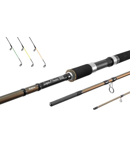Comme le nom indique, il s'agit d'un successeur de la première génération réussie de canne feeder Delphin LEGIA. Pendant la conception de sa deuxième version, on a décidé de suivre vos suggestions et c'est pourquoi ce produit est à un niveau plus élevé. Tous comme la version précédente, ce modèle est aussi basé su le blank complètement parabolique 24T. Cela assure les qualités mécaniques parfaites, bonne durabilité et la maîtrise des poissons. On a aussi ajusté le cône du blank pour le corps encore plus mince ! Les diamѐtres des anneaux sont également différents pour produire encore plus des résultats lors des lancers. Avec ces derniers, des scions bien élaborés vont vous aider. Deux scions Glasscarbon (UltraLight et Light) et un Carbon (Medium) font partie d'emballage. Un autre changement est une recouverture des connexions de la canne avec une couche carbon 3K qui les renforce encore plus. Elles ne semblent pas d'être si rigide lors de mouvement grâce à leur flexibilité. La plus grande différence que vous pouvez apercevoir au premier coup d'œil est le passage de la poignée segmentée vers la poignée pleine. Ceci nous a permis d'utiliser le porte-moulinet DPS qui est capable d'accommoder même les moulinets avec un pied plus grand et on a eu la chance de changer la forme de poignée. Cette dernière est pleine et recouverte en mousse EVA et rubber cork aux extrémités. Informations techniques : Modèle 330 cm / 80 gNombre d'éléments : 3Diamètre du blank au-dessus de poignée : 12,7 mmNombre d'anneaux : 11Dimensions en transport : 106 cmPoids : 200 gPoignée : Mousse EVA + RUBBER corkLongueur d'une poignée (d'une partie basse jusqu'au centre de porte-moulinet) : 46 cmDiamètre du scion : 3,15 mm Modèle 360 cm / 80 gNombre d'éléments : 3Diamètre du blank au-dessus de poignée : 13,5 mmNombre d'anneaux : 13Dimensions en transport : 126 cmPoids : 216 gPoignée : Mousse EVA + RUBBER corkLongueur d'une poignée (d'une partie basse jusqu'au centre de porte-moulinet) : 47 cmDiamètre du scion : 3,15 mm Modèle 360 cm/120 gNombre d'éléments : 3Diamètre du blank au-dessus de poignée : 14,2 mmNombre d'anneaux : 13Dimensions en transport : 126,5 cmPoids : 230 gPoignée : Mousse EVA + RUBBER corkLongueur d'une poignée (d'une partie basse jusqu'au centre de porte-moulinet) : 47 cmDiamètre du scion : 3.35 mm ...