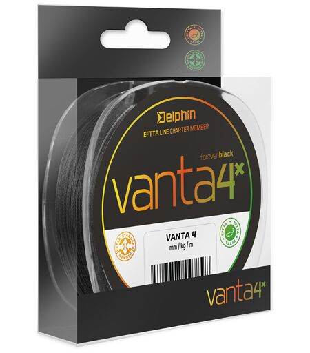 Une tresse exceptionnelle de quatres microfibres PE densement tressées. Ce type de tressage, le profil rond et le revêtement spécial garantissent le glissement parfait dans les anneaux de la canne. Un des plus grands avantages de la tresse VANTA est sa couleur durable. Elle est en granulat noir qui ne perd jamais sa couleur ! Dans les nombreux cas, la couleur noire est très effective, car elle contraste bien avec l'eau et le pêcheur sait exactement où se trouve la tresse et l'appât. Ella a une excellente résistance au frottement ce qui est convenable pour les pêcheurs à la traîne ou feeder. La durabilité de couleur, résistance au frottement et solidité sont les avantages les plus évidentes de la tresse Delphin VANTA 4. ...