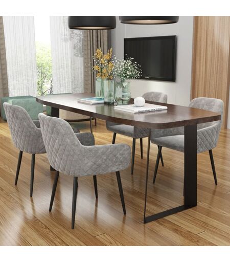 Wyctin - Hofuton Lot de 2 chaises de salle à manger, fauteuils de table, velours, métal, gris