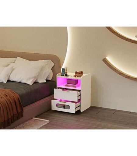SIFREE Table de Chevet Intelligente led avec 16 Couleurs rvb & Station de Recharge – 2 Tiroirs de Rangement, mdf Haute Qualité – Design Moderne Gain de