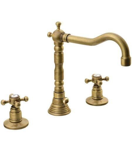 Mitigeur de lavabo trois trous hauteur : 175 mm matériau : laiton, couleur : bronze manipulation : par poignées raccord de l’arrivée d’eau : G 1/2 " fourni avec une bonde refermable et des flexibles d’alimentation ...