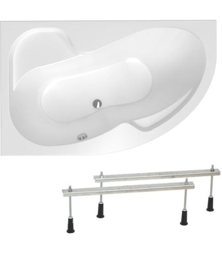 Siko - 150x100 cm Fortuna Plus baignoire asymétrique avec pieds, Acrylique, Gauche, Blanc (FO1500LPLUS-SET)