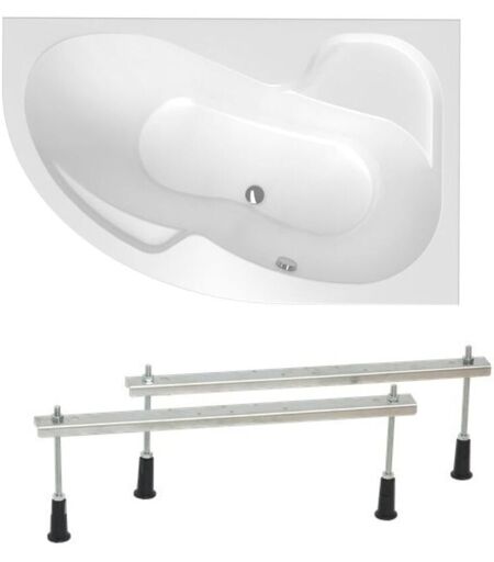 Siko - 170x100 cm Fortuna Plus baignoire asymétrique, avec pieds, acrylique, droite, blanc (FO1700PPLUS-SET)