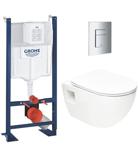 Grohe - Pack wc Bâti Autoportant Rapid sl + wc sans bride sat + Abattant SoftClose + Plaque Chrome (Project2-1)