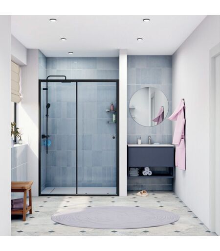 Swiss Aqua Technologies SAT PROJECT Porte de douche 140x185cm coulissante avec profilé noir mat (SATPROMUD140CT)